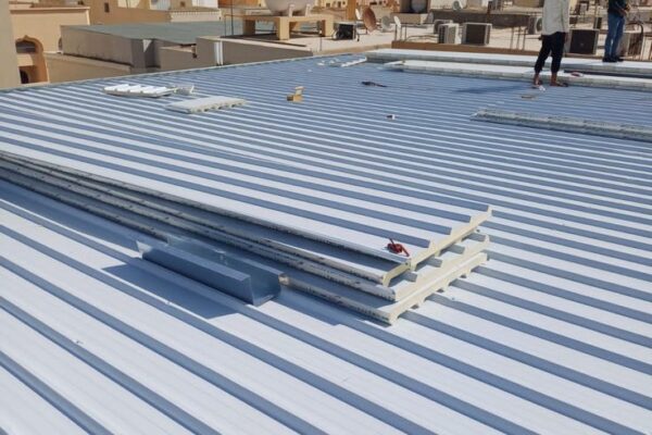 يتم تثبيت ألواح الساندوتش بانل على الهيكل المعدني بدقة مع إحكام الفواصل لمنع تسرب الهواء أو الماء، مما يضمن عزلا مثاليا.